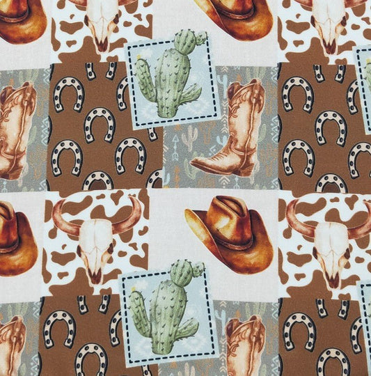 Brown & Ivory Boot Print Baby Romper – Western-Inspired Style with Snaps