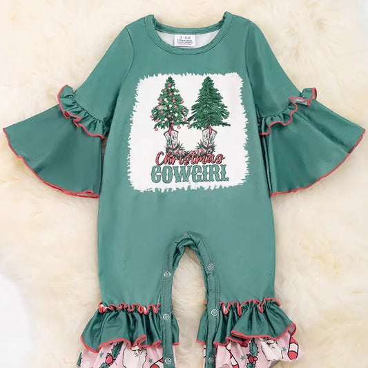 Western Wonderland Baby Romper - Two-Steppin' Christmas Trees in Every Boot!