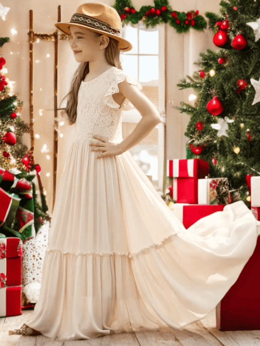 Western Floral Lace Maxi Dress for Girls — Elegant Cowgirl Dress