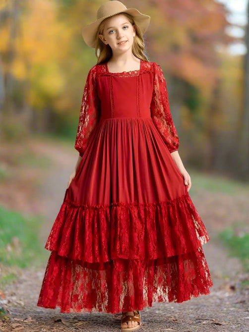 Red Canyon Lace Long-Sleeve Tiered Dress