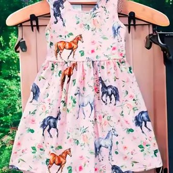 Charming Pony Print Sleeveless Cowgirl Dress for Little Western-Themed Girls