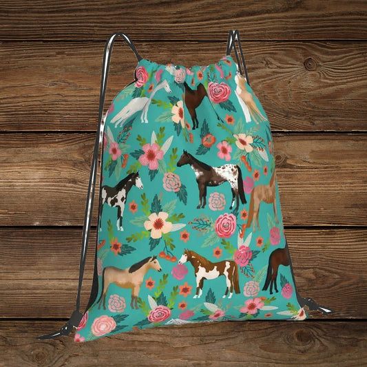 Wild Horse Floral Drawstring Sport Backpack