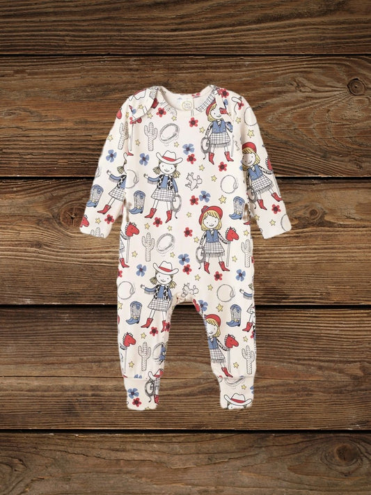 Annie Oakley's Little Cowgirl's Eco-Friendly Wild West Adventure Romper - Bamboo Hypoallergenic Baby Outfit