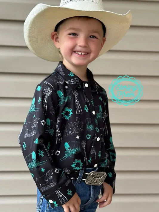Buckaroo Swagger: Kids Western Cowboy Style Black Boys Long Sleeve Button-Up Shirt