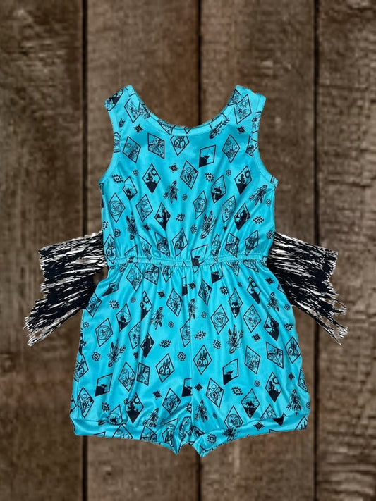 Turquoise Trails Cowgirl Romper for Girls - Kids Western Summer Outfit