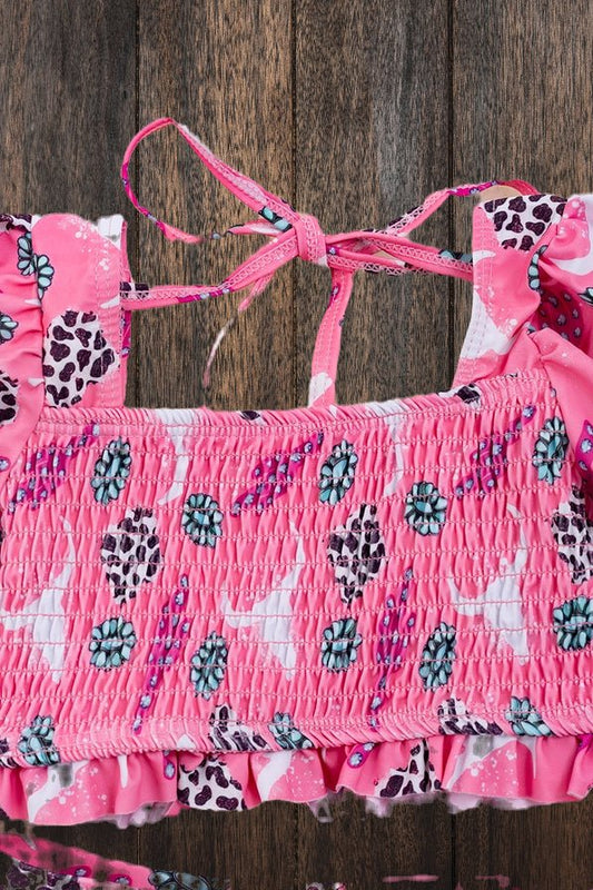 Wild West Waves Girls' Cactus Quick-Dry Smocked Swimwear Set - Toddler Ruffle Bikini