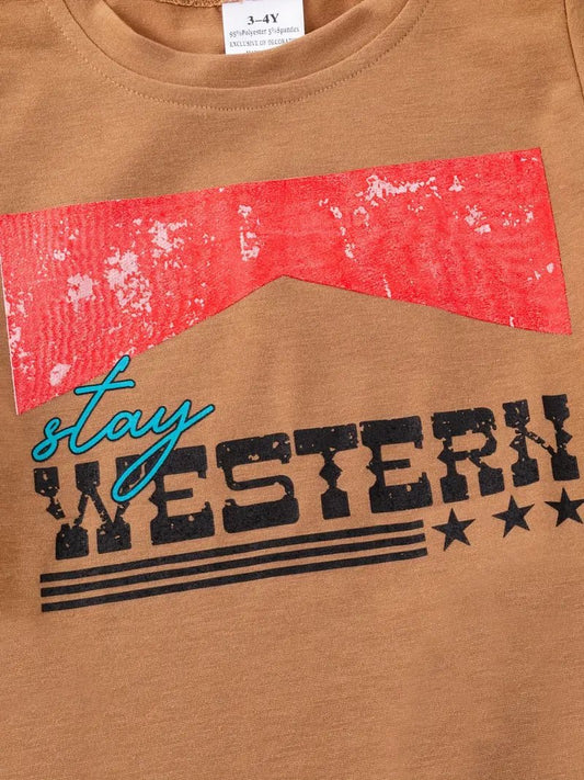 Stay Western Boys' Red and Beige T-Shirt & Shorts Set - Kids Cowboy Clothing, Western Style Kids Apparel, Children's Rodeo Wear