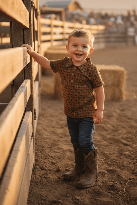 Western Boys Buckle Polo Shirt - Bucking Bronc & Cactus Print