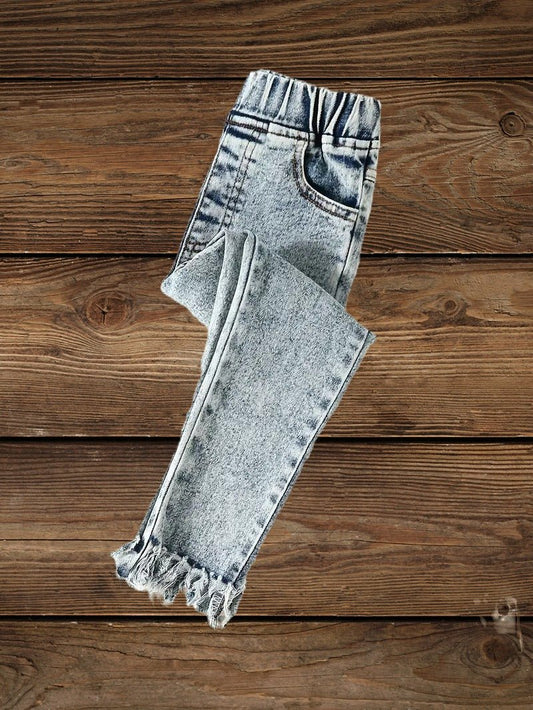 Trailblazer Tassels: Frontier Chic Light Wash Western Elastic Jeans for Little Outlaws!