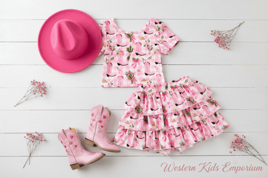 Girls Western Cowgirl Crop Top & Tiered Skort Set