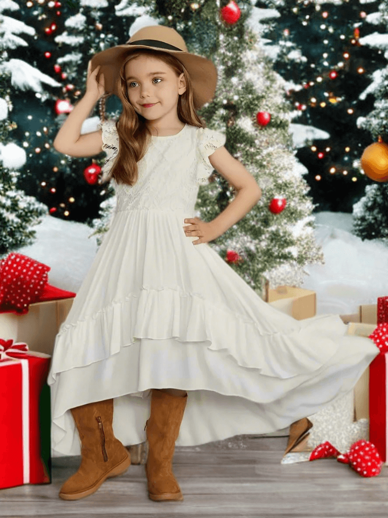 Lace & Lassos: Ruffle Trim High-Low Tail Dress for Little Cowgirls!