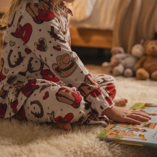 These children's western clothing pajamas are ideal for moms and grandmas who want to celebrate both Valentine's Day and the western lifestyle. Whether for bedtime, lazy weekend mornings, or cozy lounging, these western baby clothes bring ranch charm to sleepwear.